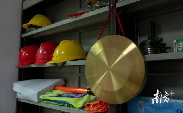 中和村村委会里,摆放着用来通知村民转移的铜锣。
